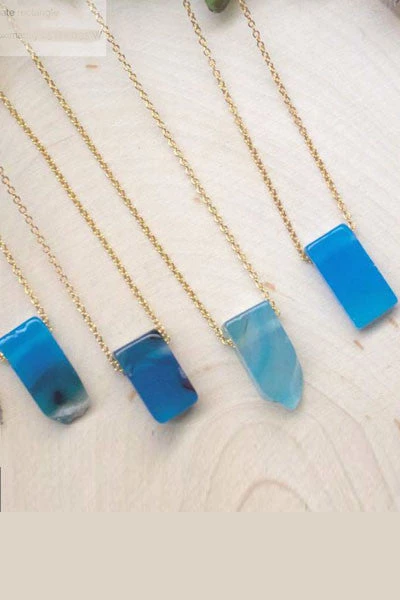 Beautiful necklace made of unique blue agate, handcrafted in the U.S.A. Beautiful blue agate gemstone rest beautifully on your chest and feel the calm, positive energy. If you prefer, this piece will layer nicely with a tiny crystal, but rest assured, it will make a statement on its own. Agate is said to have calming, soothing effects on the mind, especially when used over some time. It can help enhance mental clarity and concentration.