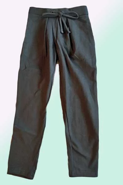 Jet black girl’s pants with classic silhouette and a handsome tie on a top. Any’s girl wardrobe staple. Nice sturdy weight of high-quality organic cotton, while very soft and safe without any chemicals. This garment will keep the child and our environment healthy.