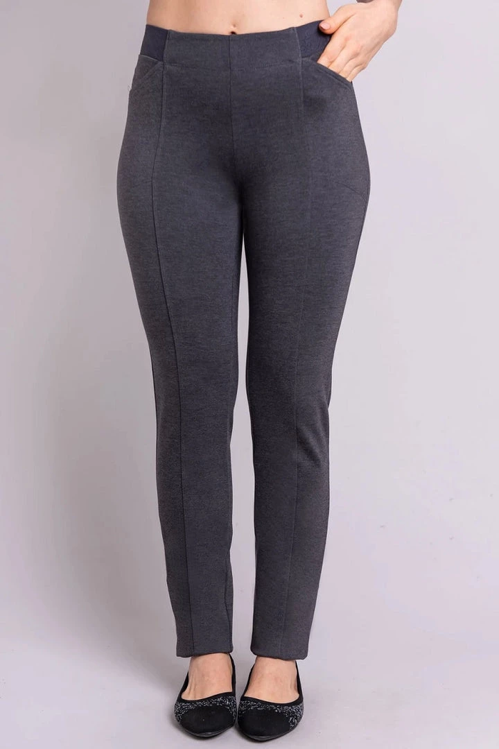 These Pants look tailored, with freedom and ease of movement, and the comfort almost of leggings. A rich matte finish, flattering look. They can be casual or dressy.