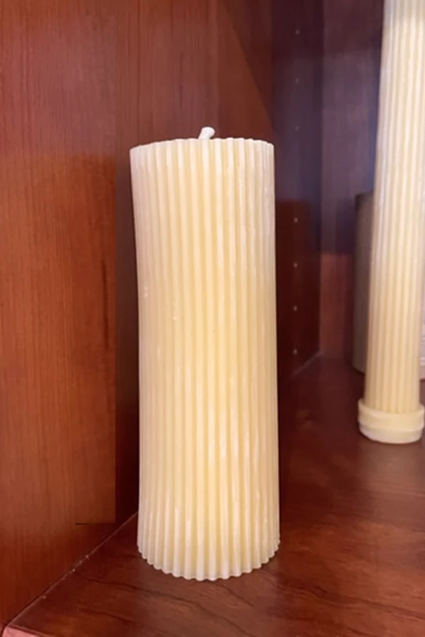 Candles are sold individually or as a set of 3. Cylinder-shaped candles – Size: Short 4″ (aprox. 10×5 cm), Medium 6″ (15×5 cm), Tall 10.6″ (27×2.8 cm).Â