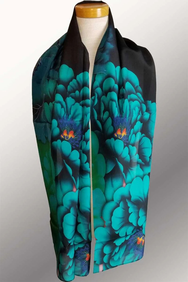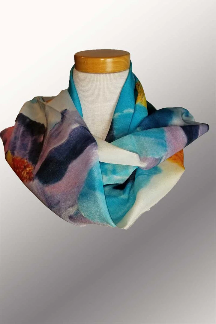 Beautiful silk scarves that are a perfect accessory for any woman. Gorgeously painted silk is a true piece of art and a pleasure to look at and wear. Hypoallergenic works for the most sensitive skin.Â
