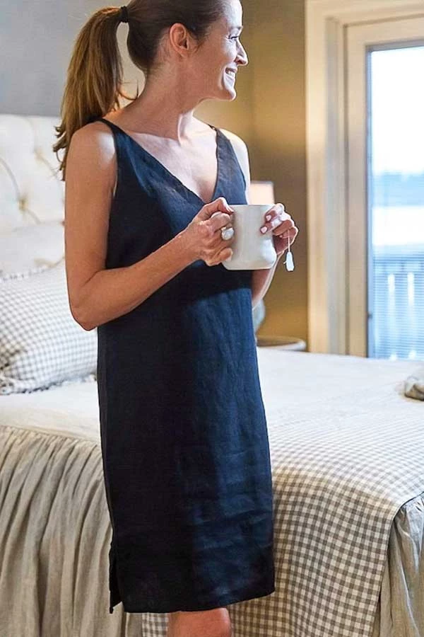 The Celine linen nightie is made from 100% European linen, with a deep V-neck, adjustable straps and side slits. This cozy nightie is comfatrtable and cool to sleep in as linen is a perfect heat regulator for warm days and great for all occasions. Hit slightly above or at the knee. True to size.