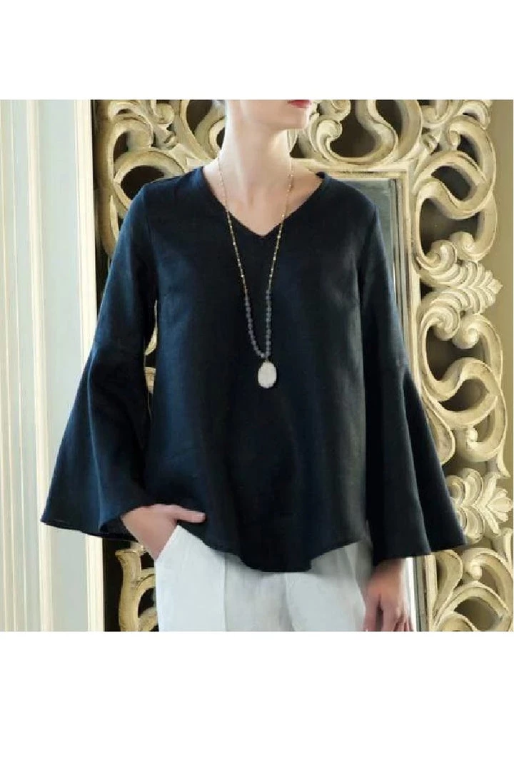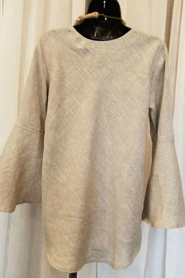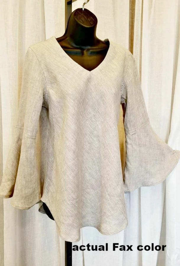 Beautiful flowy feel in this well-crafted linen tunic top. Gorgeous princess sleeves with wide flare on a bottom, classic A-line, flattering V-neck finish.