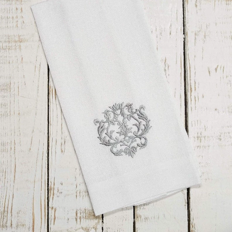 Linen finger towel (tri-fold) for your family and guests. The timeless elegance of 100% European linen napkin with a beautiful pattern embroidered in complementing colors.Â