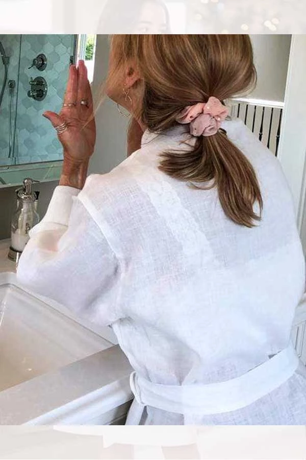 100% linen. Do not be afraid of linen – it is the oldest fiber on Earth and a perfect temperature regulator for warm days. It breathes well and if a bit of wrinkle bothers you (casual chic), a clothes steamer works magic. Linen is best for a natural elegance.
