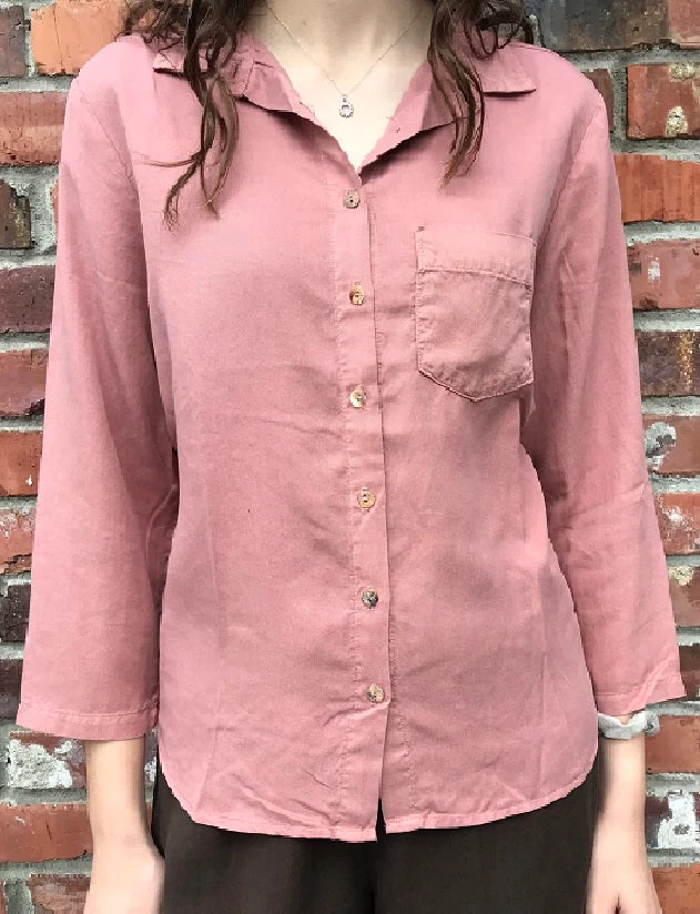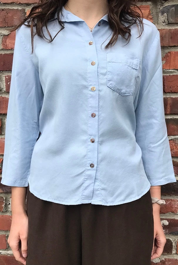 Another great Tencel garment that most of us love! Classic style – button down, collared, with a pleat in the back and a rounded shirttail hem. It’s a go-to wardrobe piece for layering or on it’s own. It is well cut and well sized. It’s perfect for everyday life, comfortable, soft, and healthy.