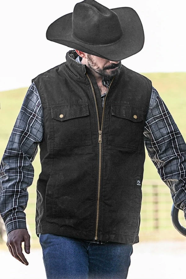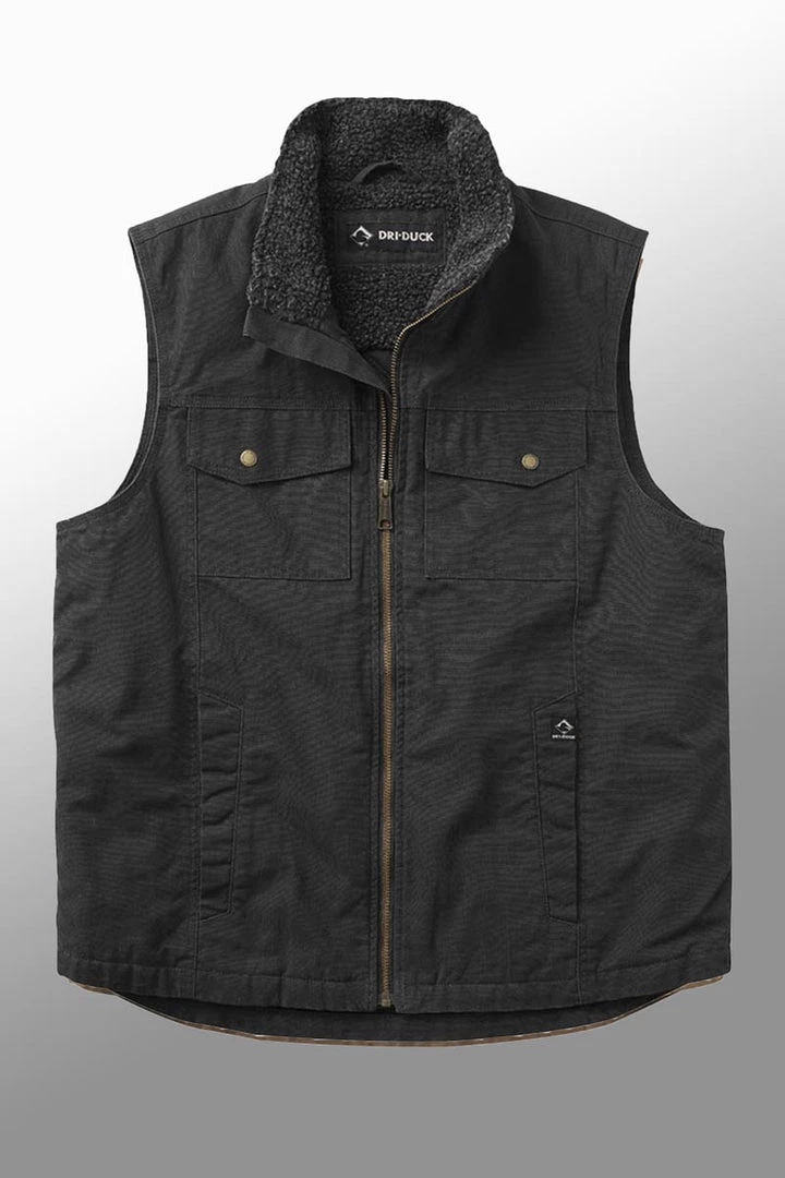 A nice thick vest that is warm, rugged and good looks great in all seasons.  Layers perfectly with our Dri-Duck flannel shirts. Wear it as your favorite coat or layer for extra warmth.  It protects you from the wind and chill while being super comfortable. It’ll last for years without falling apart.