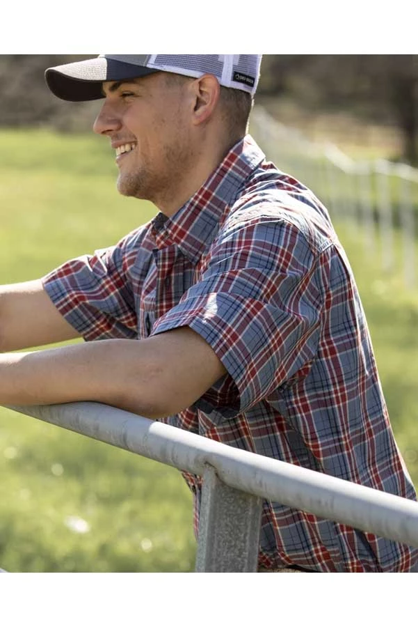 A strong men’s short sleeve plaid shirt that will work hard. Constructed to last with double stitches and high-quality materials, the shirt is rugged, yet comfortable and easy to care for. It features two chest pockets: one with a pencil slot and one hidden zipped one. Low stand-up collar that will not get in the way. Comfortably fitted, the shirt is perfect for any setting and made to last.
