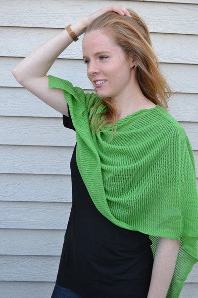 Lightweight organic cotton poncho top that is a great easy piece to keep handy or pack for a trip. Beautiful light weave makes a quick throw-over piece for a tank top, swim suit or lighter tee. Simple square in beautiful vibrant summer colors and a great price. Easy to pack and easy to wear – one size fits most.