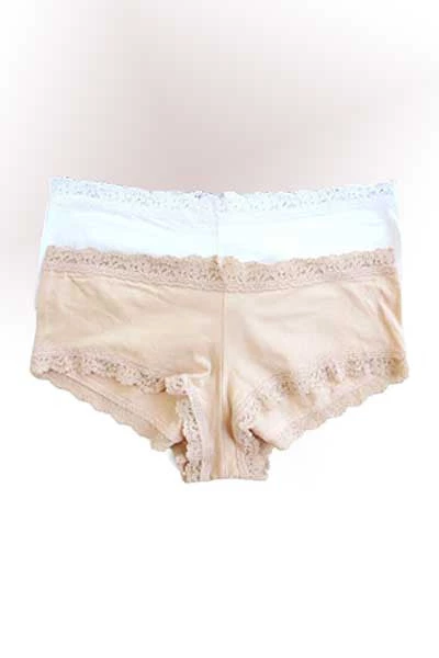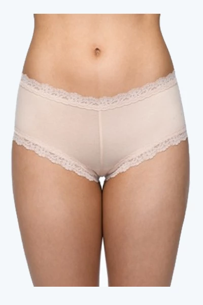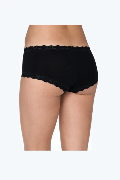Soft organic cotton women’s boy shorts with beautiful lace finish. Medium rise, good back coverage, no visible panty line. Truly beautiful and made in U.S.A.