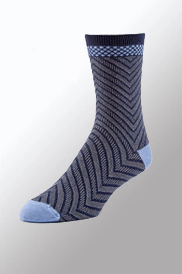 These handsome socks have a beautiful pattern of two colors woven in arrow-like pattern. Socks are made of a blend of organic cotton and nylon for durability, and perfect craftsmanship for comfort. Lightweight knit for all-day wear.