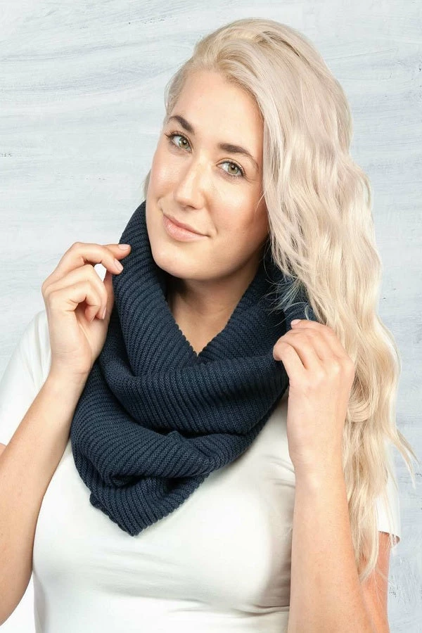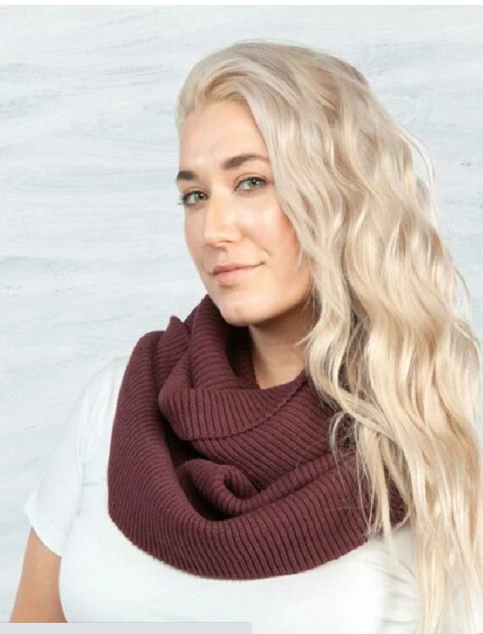 This chunky deep rib style scarf wraps around your neck or shoulders in one continuous loop, a great addition to any outfit. This scarf comes in a few great colors and matches a beret in the same knit. https://naturalclothingcompany.com/products/organic-slouchy-beret