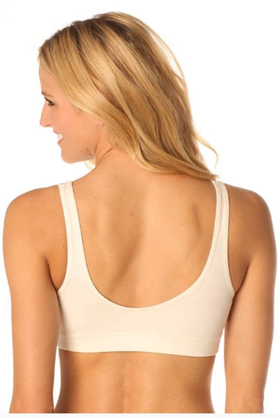 This is a best-selling organic cotton padded bra with a crossover front and straight straps. Bra has removable shaping pads and a great fit. An organic cotton shell offers breathability and comfort that’s also eco-friendly. Double thick 1″ wide fabric band on the bottom for much support. The bra has a modal lining at pads portion that wicks well for daily wear or light workouts. If you’re a nursing mama, you will love the easy pull-aside front! No black closure, you put it on through your shoulders.