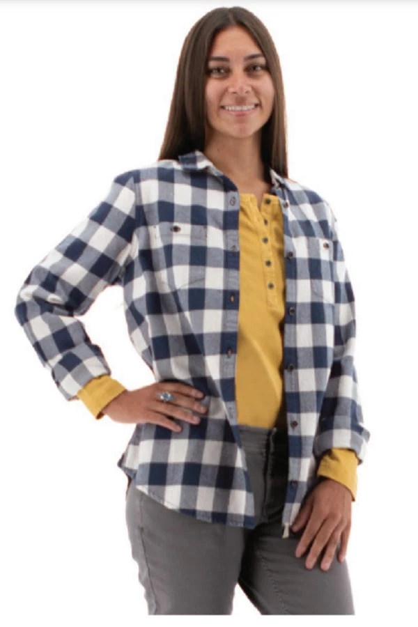 Classic plaid flannel – comfortable and easy in oversized “boyfriend” style. Long sleeves, two chest pockets, slightly rounded bottom. Quality finishes, not lined. Buttoned front, two buttons on cuffs plus extra one up for easier rolling sleeve up.Â