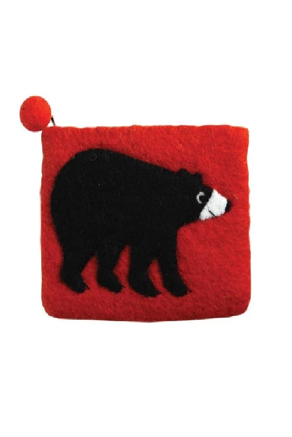 Felted Zip Pouch with Black Bear design Red. 5″ x 6″