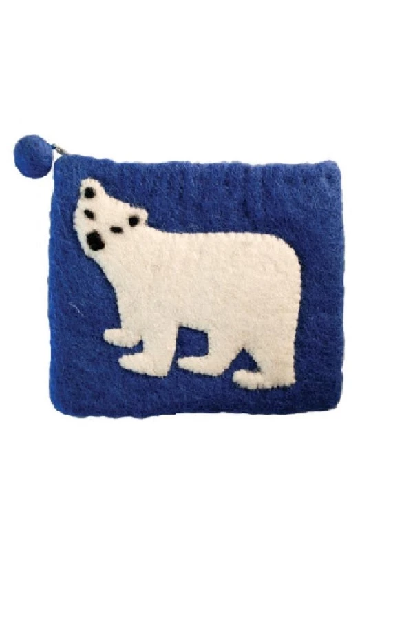 Felted Zip pouch with Polar Bear Design Blue. 5″ x 6″