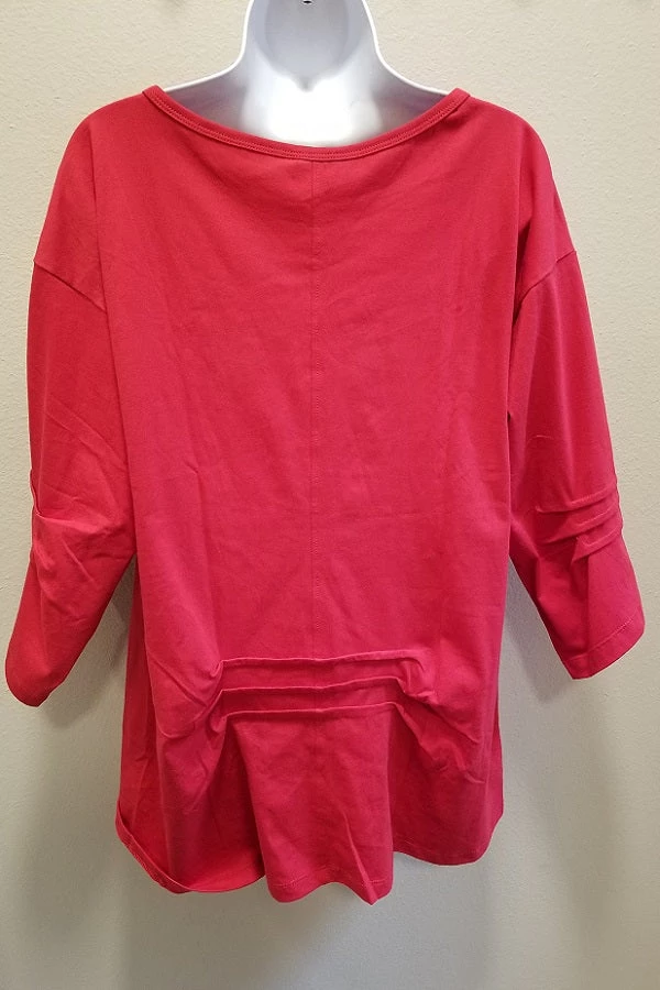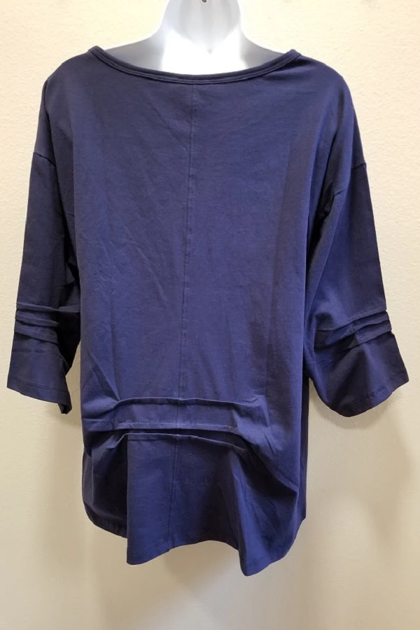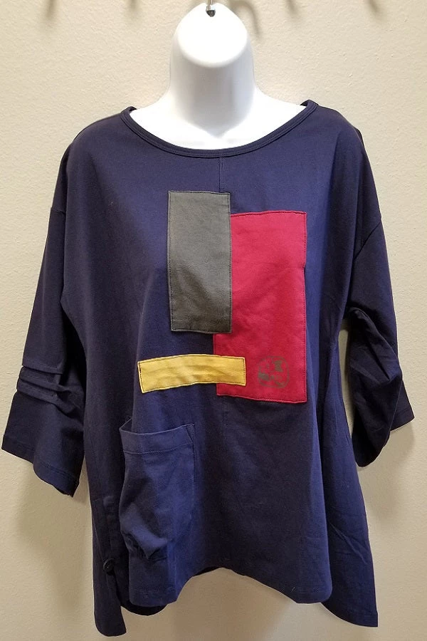 Beautiful cotton tees with class and disciplined Japanese design. The tee has a slight A-line shape, 3/4 dropped sleeve with triple decorative seam detail, and a small pocket in the front. Hem has 6″ slits on both sides with a cute button. A beautiful garment with very subtle details that makes it truly unique and perfect for any occasion. The garment is made with Japanese techniques of combining simple shapes into an esthetic configuration that represents beauty and art. The colors/patterns may vary slightly with each garment, all unique and all beautiful.